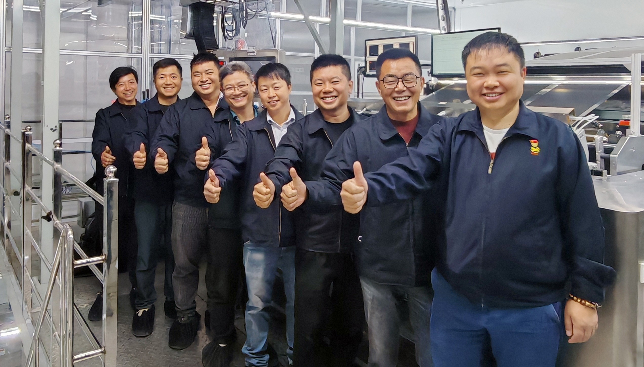 此次试机在酒泉南都电源有限公司车间内进行,试机过程中,机器运行平稳,无折皱、无卡顿,涂布效果均匀细腻,以预设的速度和精准度完成了各项涂布任务,各项性能指标均达到预期要求。