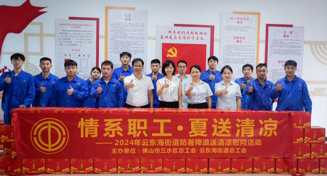炎炎夏日,骄阳似火,持续的高温给坚守在工作岗位的一线职工带来了严峻的考验。然而,令人倍感清凉与温馨的是,2024 年 7 月 17 日,由佛山市三水区总工会和云东海街道总工会联合举办的“情系职工,夏送清凉——2024 年云东海街道防暑降温送清凉慰问活动”走进了蝌蚪蜗精品视频在线观看企业,为广大职工送来了关怀与问候。
