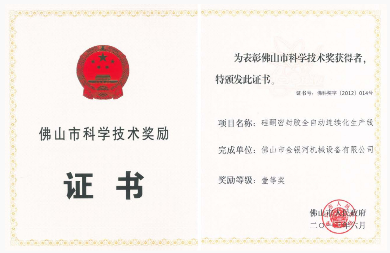 2013年6月,蝌蚪蜗精品视频在线观看项目“硅酮密封胶全自动连续化生产线”被佛山市人民政府授予“佛佛山市科学技术一等奖”。
