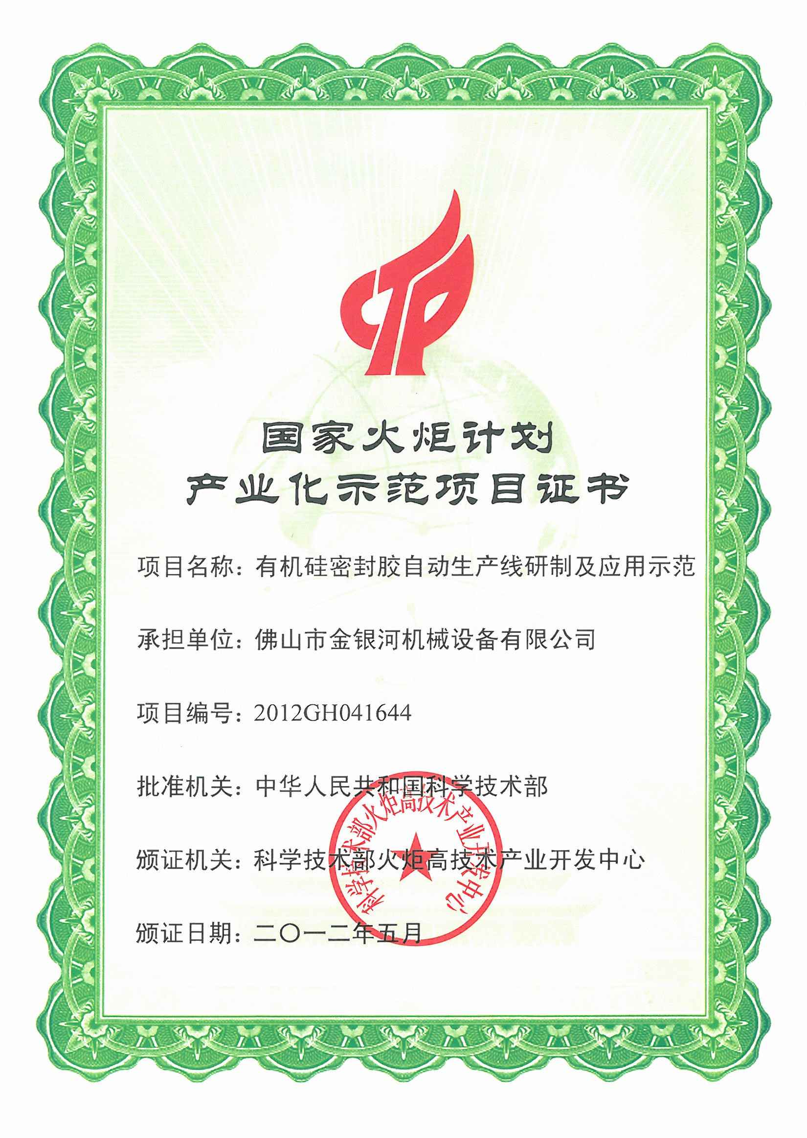 国家火炬计划产业化示范项目,是以国内外市场需求为导向,以国家、地方和行业的科技攻关计划、最新技术研究开发计划成果以及其它科研成果为依托,以发展高新技术产品、形成产业为目标,择优评选并组织实施的高科技产业化项目。本项目突破了国外技术封锁,填补了国内空白,替代了以往间歇式、开放式、人工投料的生产方式,实现小蝌蚪APP黄色版在线免费下载密封胶的全连续、全密封、全自动生产,对推动我国小蝌蚪APP黄色版在线免费下载产业创新发展具有重要的战略意义。