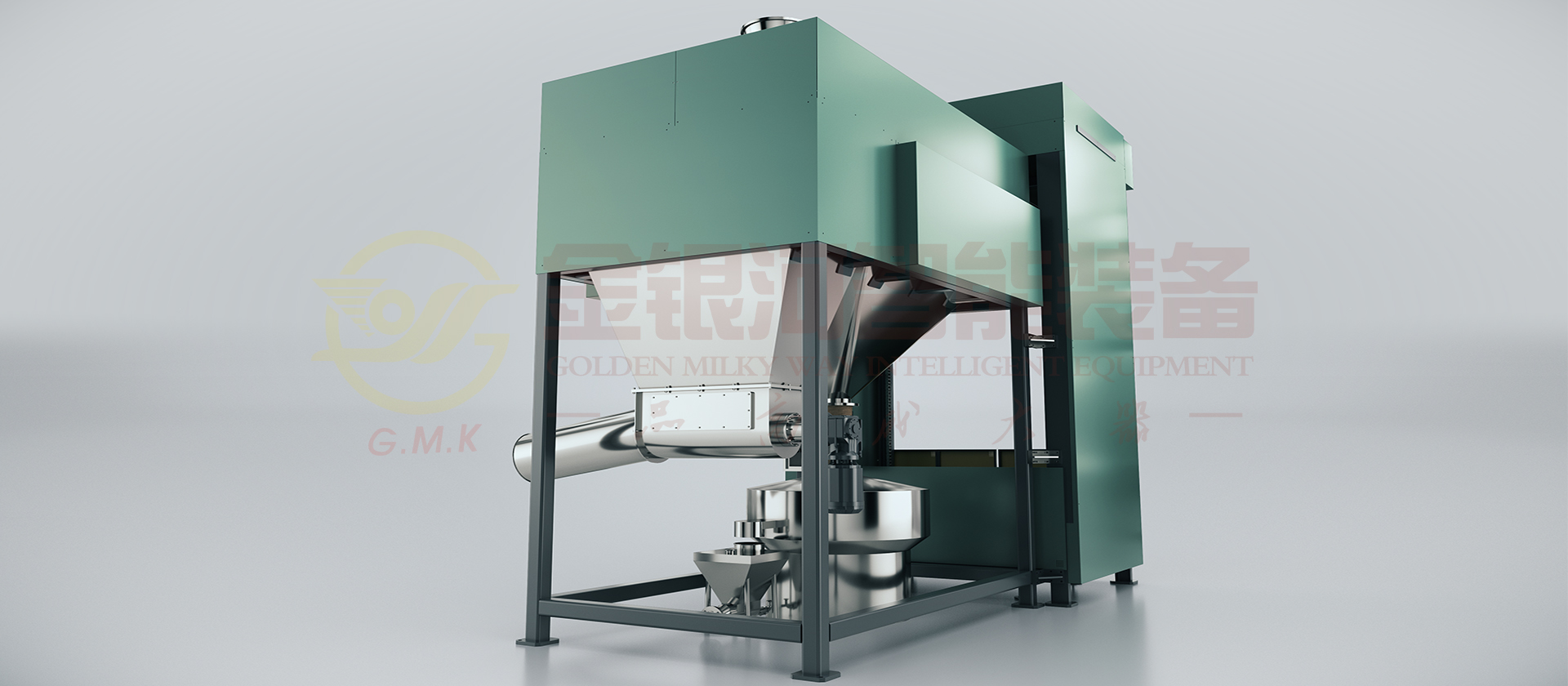 新型自动拆包机由粉体升降系统、抓包系统、切刀系统、抖粉系统、排袋系统、旋转放料阀、震动筛组成,后端可以与隔膜泵输送或者真空系统输送配套使用,将粉体输送到储罐内;整托盘物料放置在升降系统内,设置自动一层一层进行拆袋,可实现粉体与袋包有效分离,分离好的物料通过管道可以自动输送至下游的各个生产系统;可以大大减少劳动力并降低工人劳动强度;改善劳动环境,确保劳动健康。