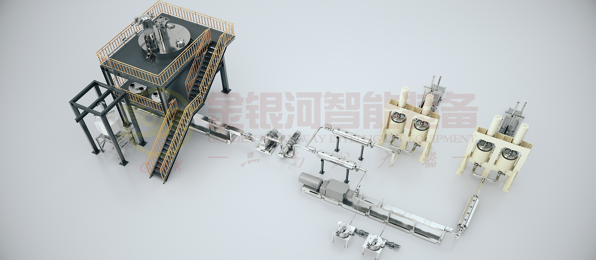 ● 流水线型超高次数双螺杆捏合分散技术,在国际上首次实现了建筑胶大产能连续化制备,产能可达3500L/h(根据机型设定)。